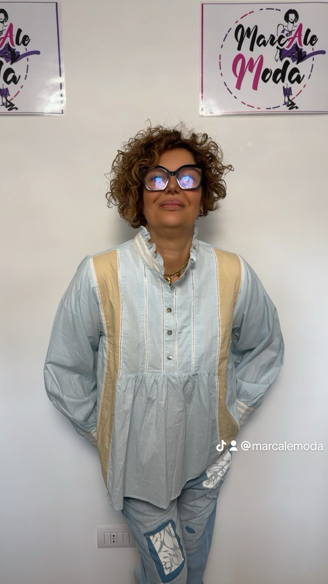Blusa brand VICBEE in tessuto 100% cotone , molto lavorata , a partire dal collo arricciato , dalle traforature verticali, maniche bombate, patch di tessuti fino al bicolore. Vestibilità: 42-48 Misure: giroseno 116 cm lunghezza 63 cm