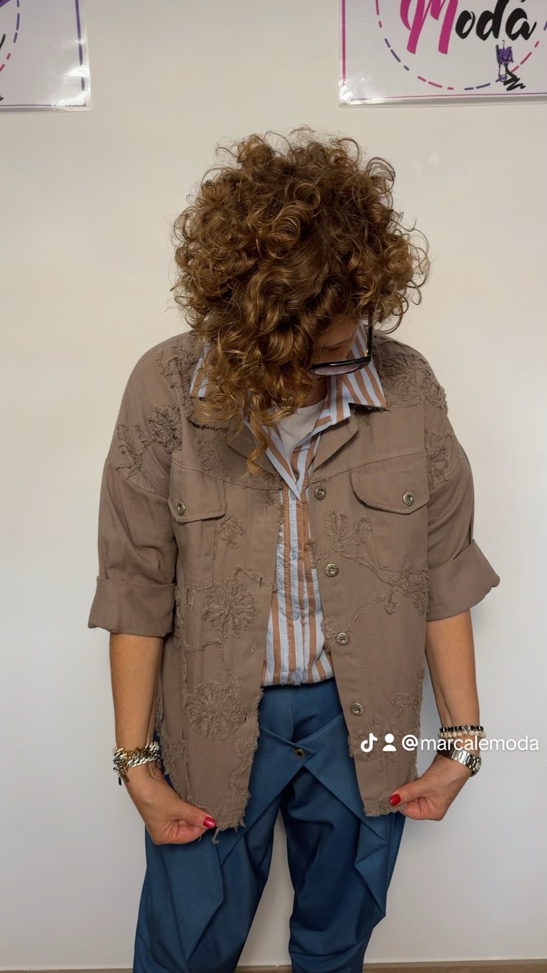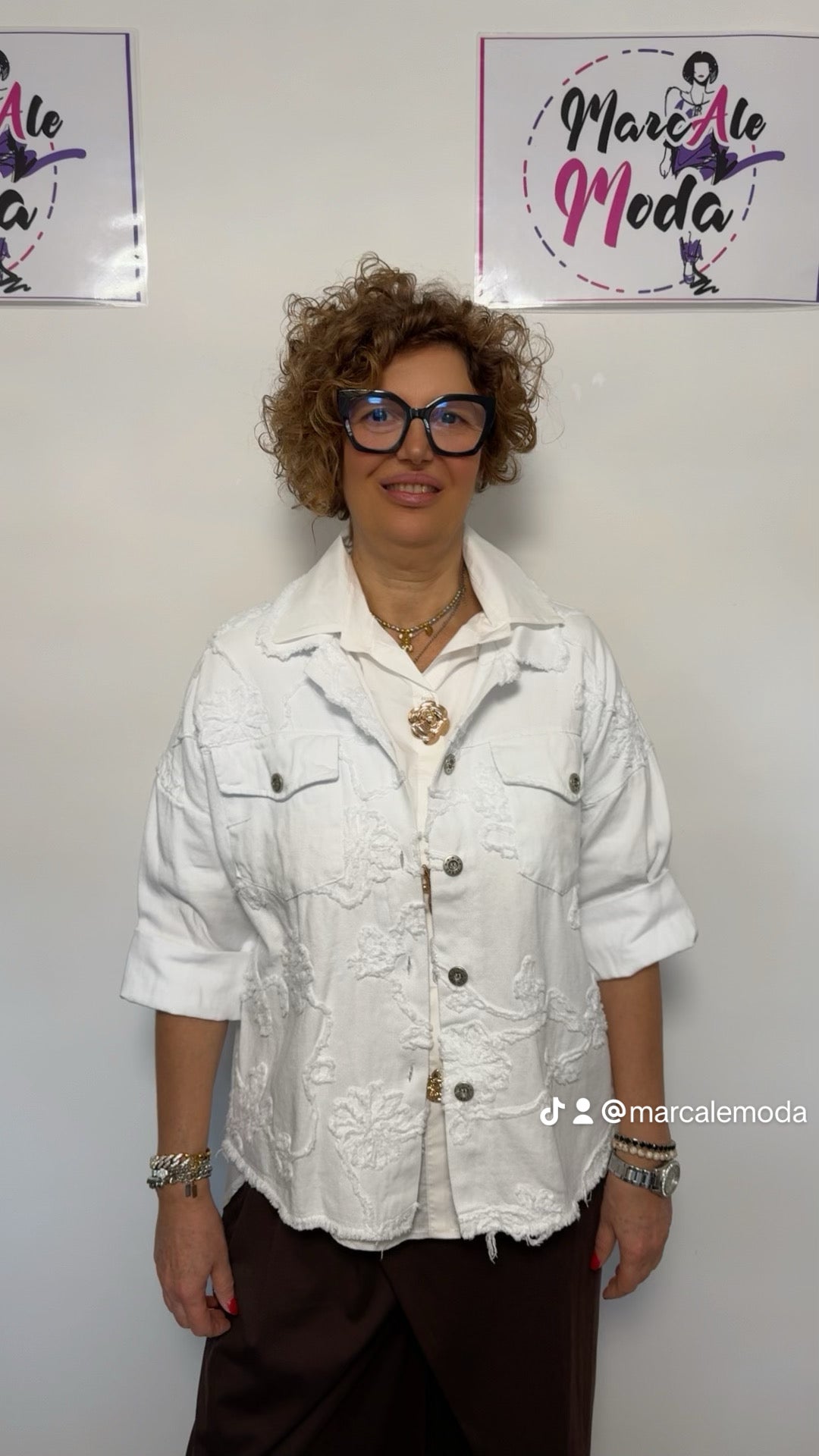 Giacchetto in jeans cotone morbido tutto ricamato tinta su tinta, taglio vivo. Vestibilità: 42-48 Misure: giroseno 124 cm lunghezza 66 cm