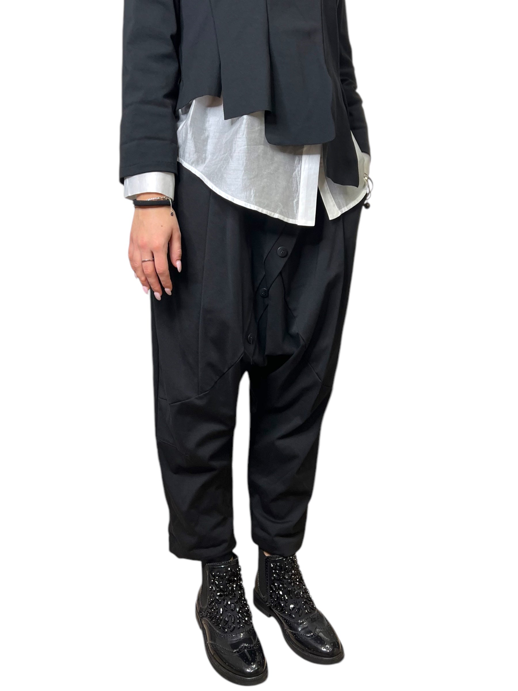 Questo pantalone Sun Sun presenta un cavallo basso e bottoni obliqui per uno stile unico e moderno. Realizzato con materiali di alta qualità, è comodo e resistente. Aggiungi un tocco di stile al tuo guardaroba con questo pantalone dal design innovativo.