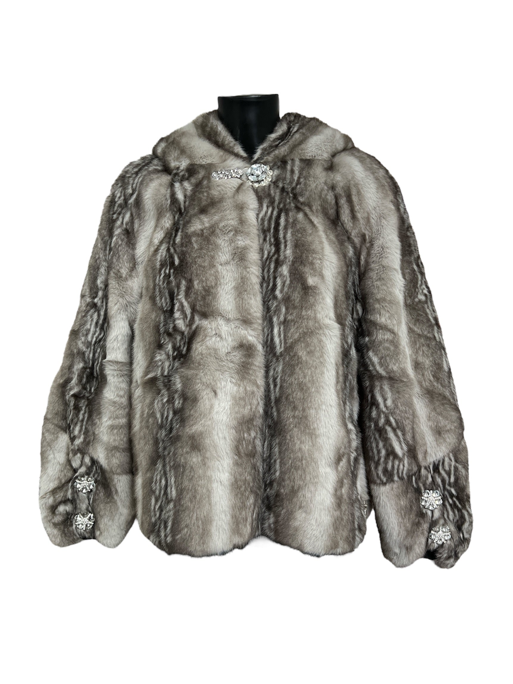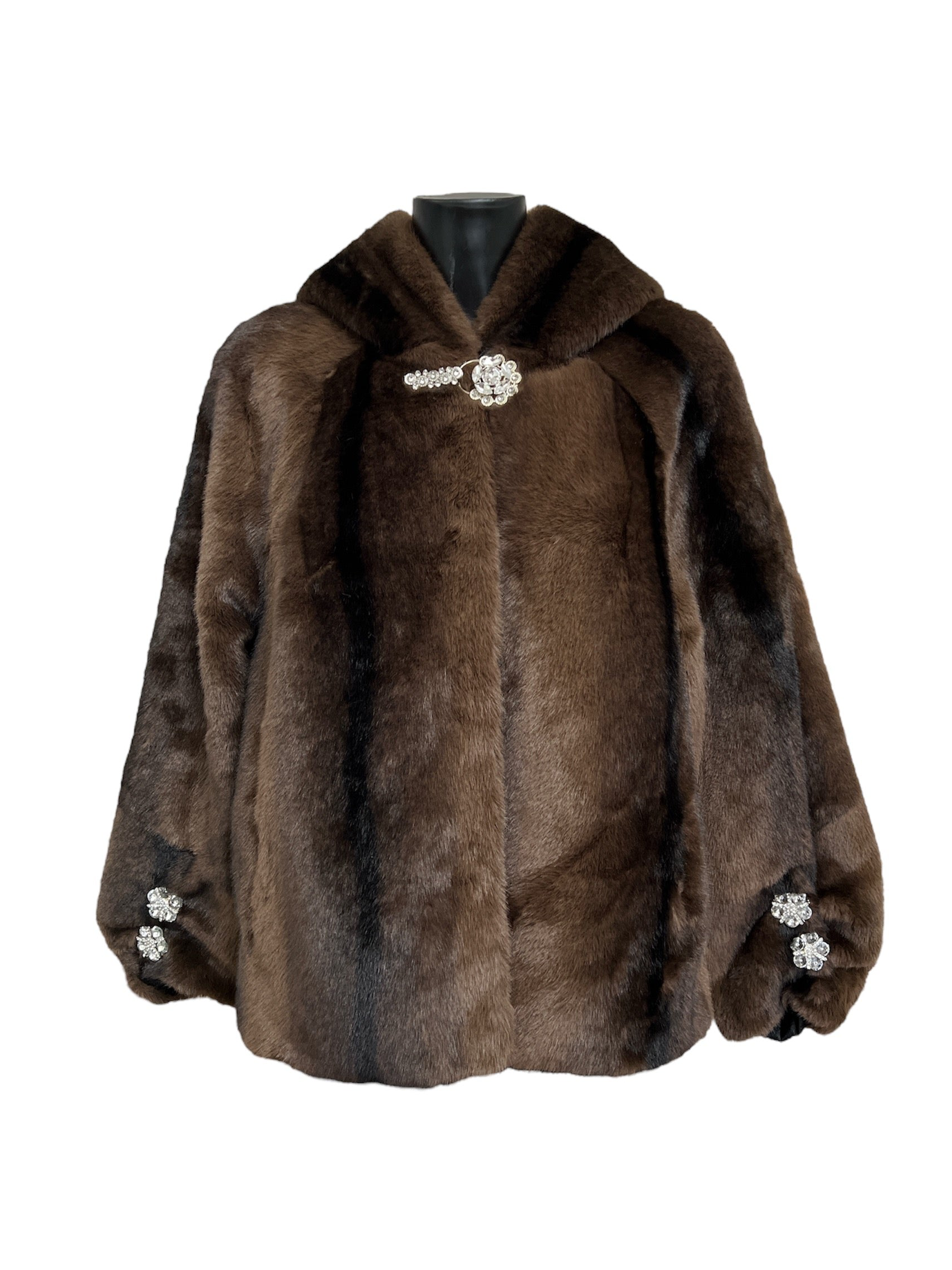 This luxurious faux fur hoodie is the perfect blend of elegance and practicality. The gem button adds a touch of sparkle, making this fur coat an eye-catcher. Not only will it keep you warm and fashionable, but it will also be a luxurious addition to your wardrobe.