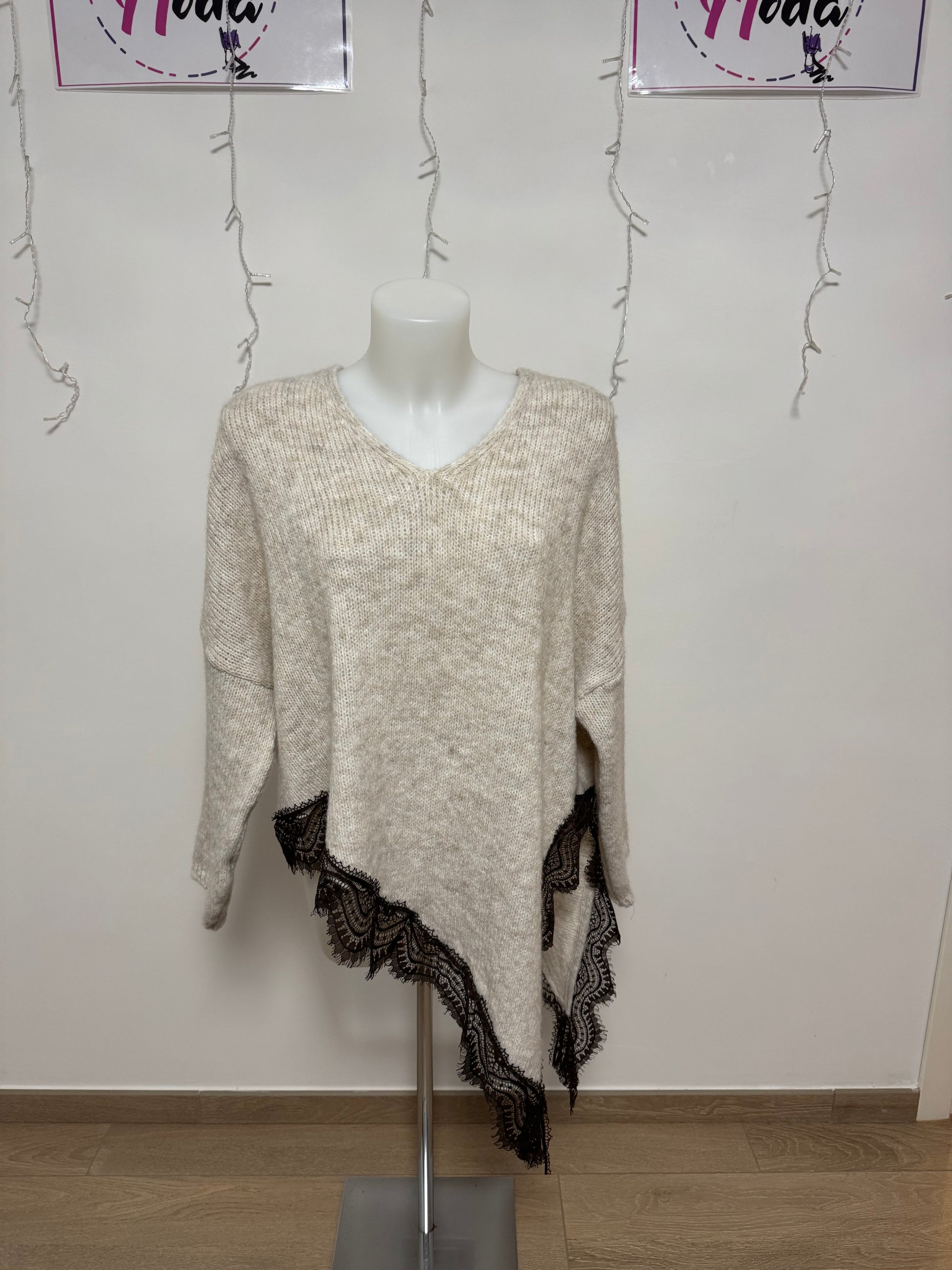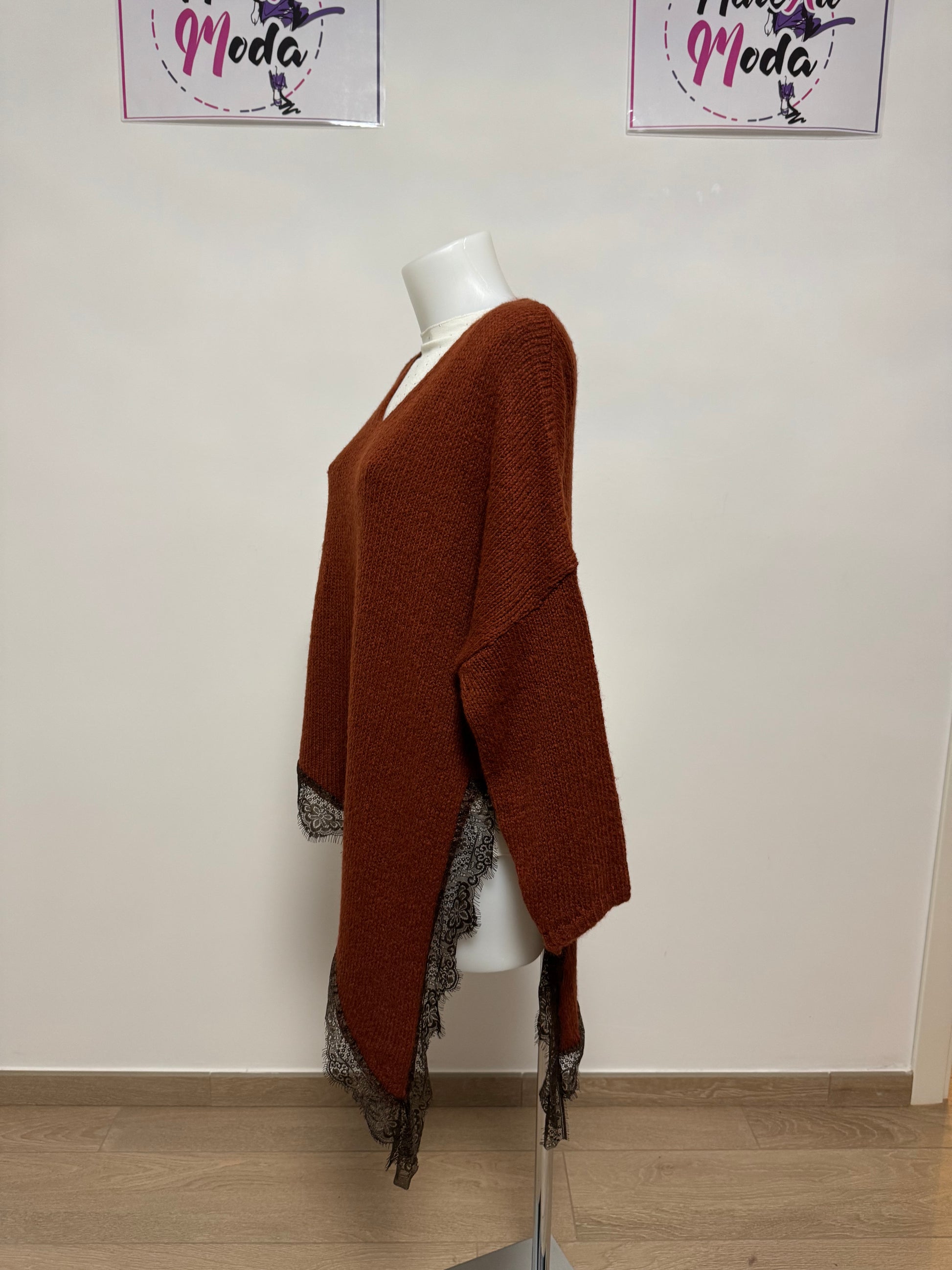 Questa blusa in lana asimmetrica è il perfetto mix di stile e comfort. Realizzata con materiali di alta qualità, offre un look unico e moderno. Ideale per le occasioni speciali o per un tocco di classe quotidiano. Lo stile asimmetrico , unitamente alla bordatura in pizzo e lo spacco laterale , aggiunge un tocco di originalità a questo capo di moda.