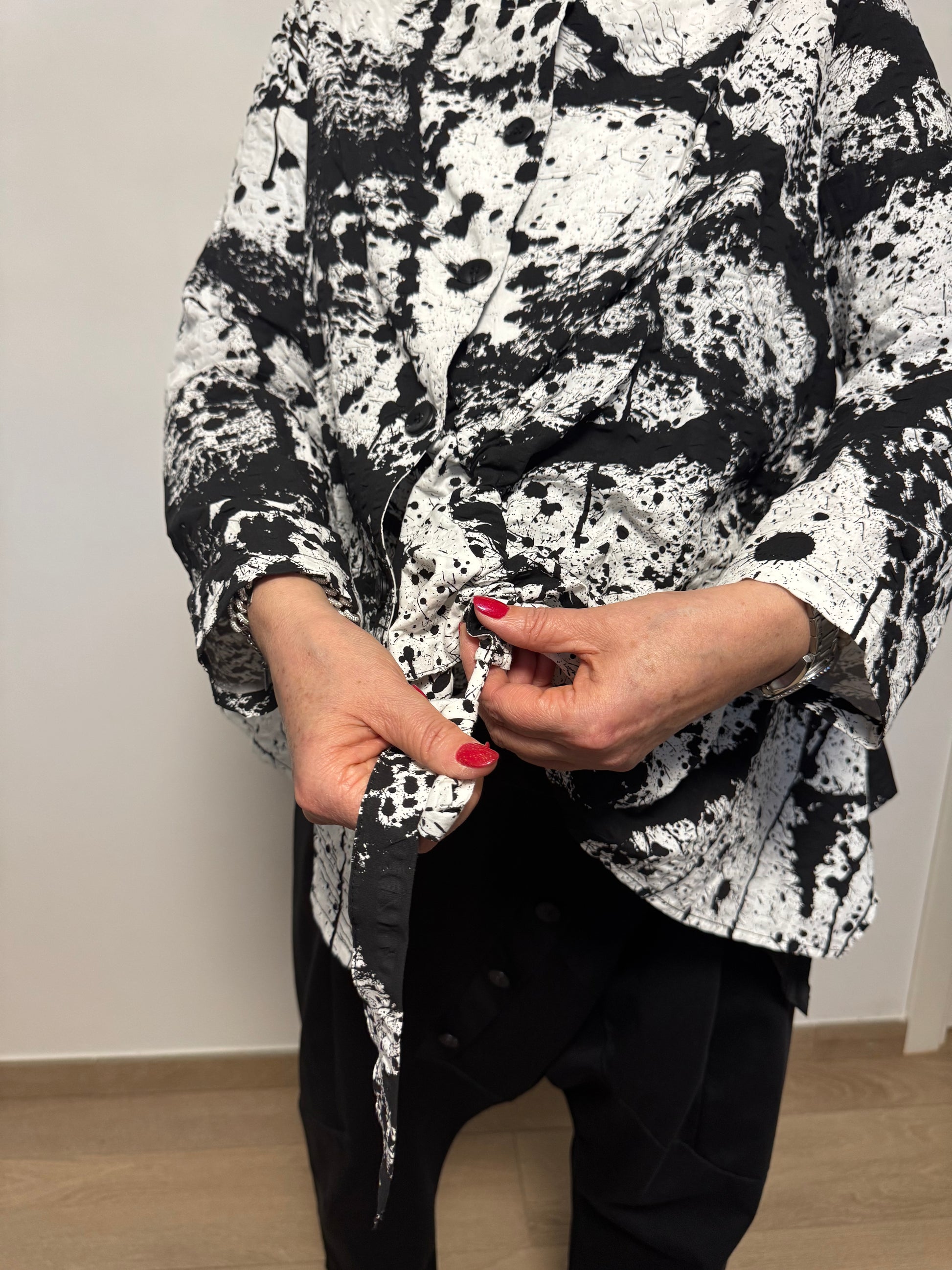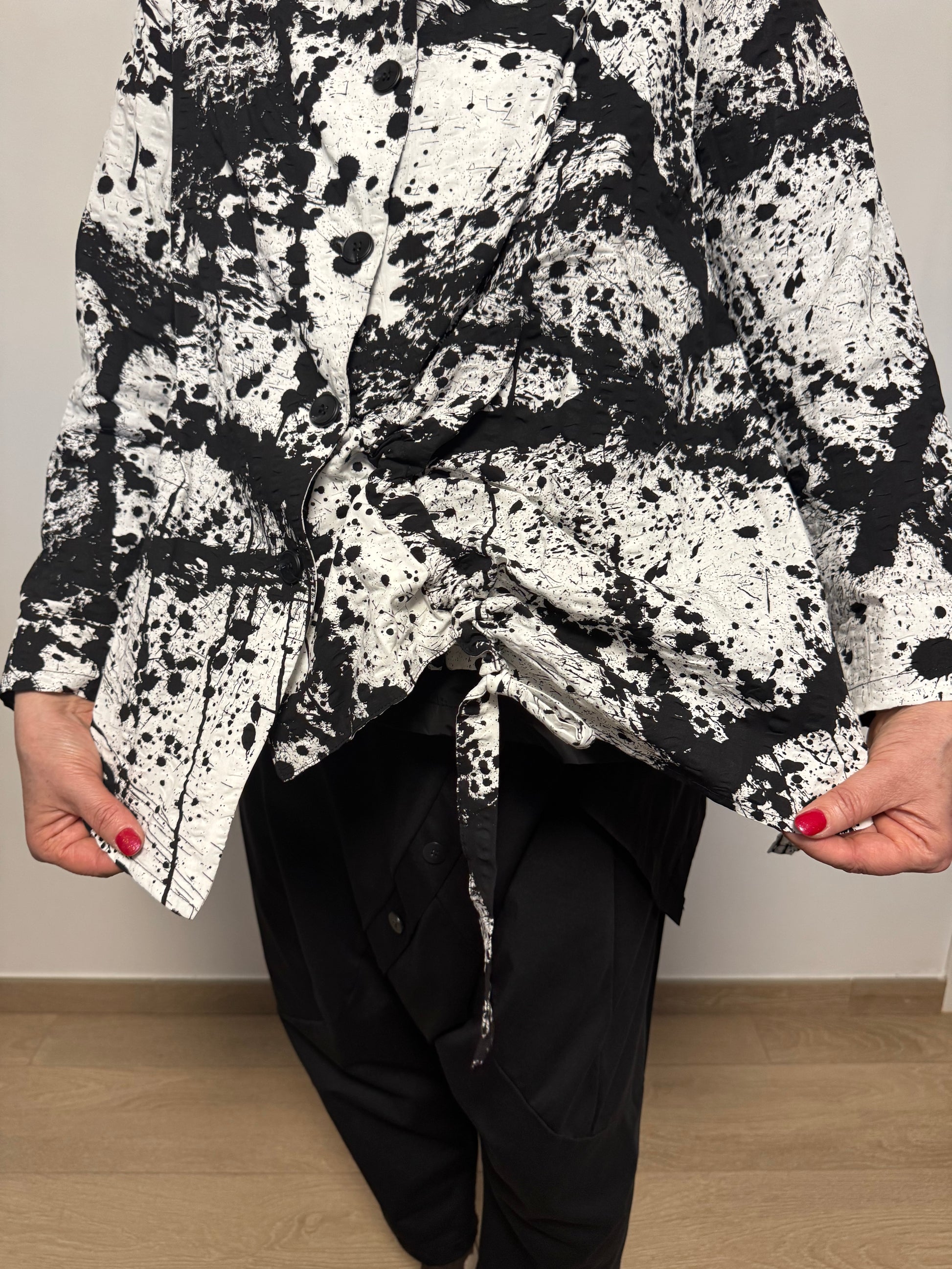Giacca brand sartoriale Wendy Trendy particolarità tutta nel filato effetto fiammato in 3D e nella parte sinistra con arricciatura da personalizzare con culisse .