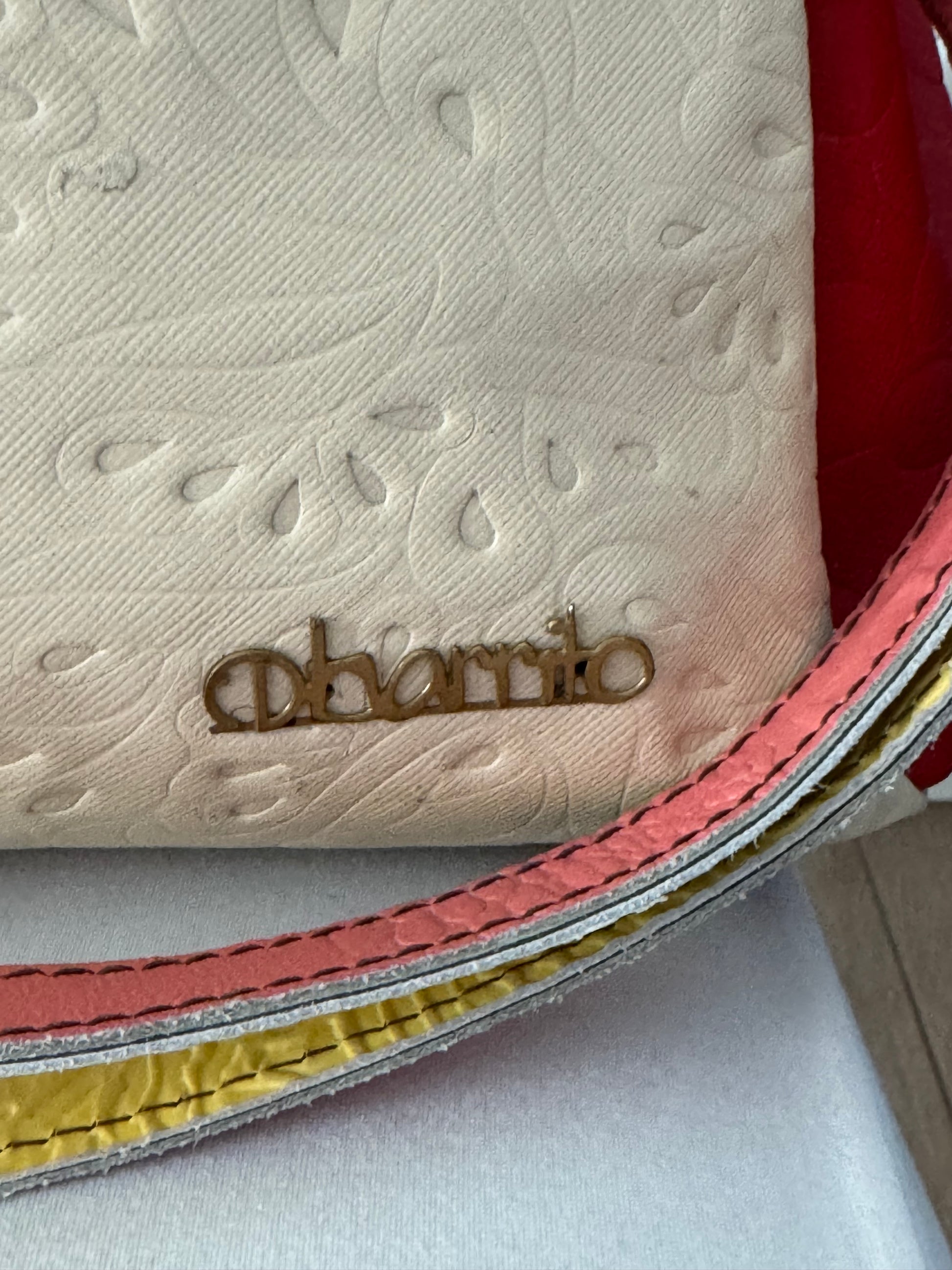 Borsa marchio Ebarrito vera pelle . Pezzo unico non ripetibile. Patch di pellame con stampe e lavorazioni tutte diverse in vitello. Vestibilita’ a mano e tracolla. Marchio che non ha bisogno di spiegazioni.