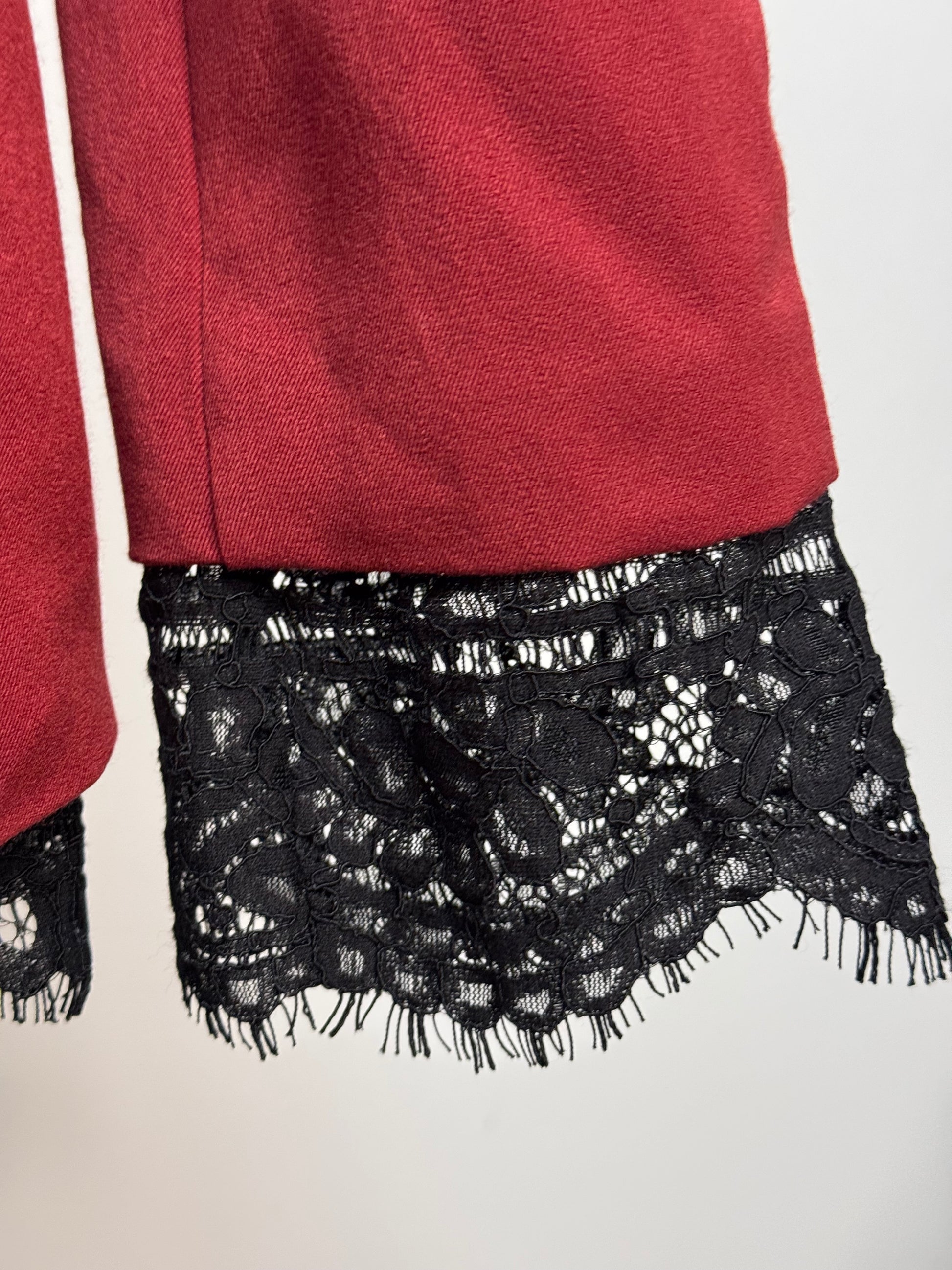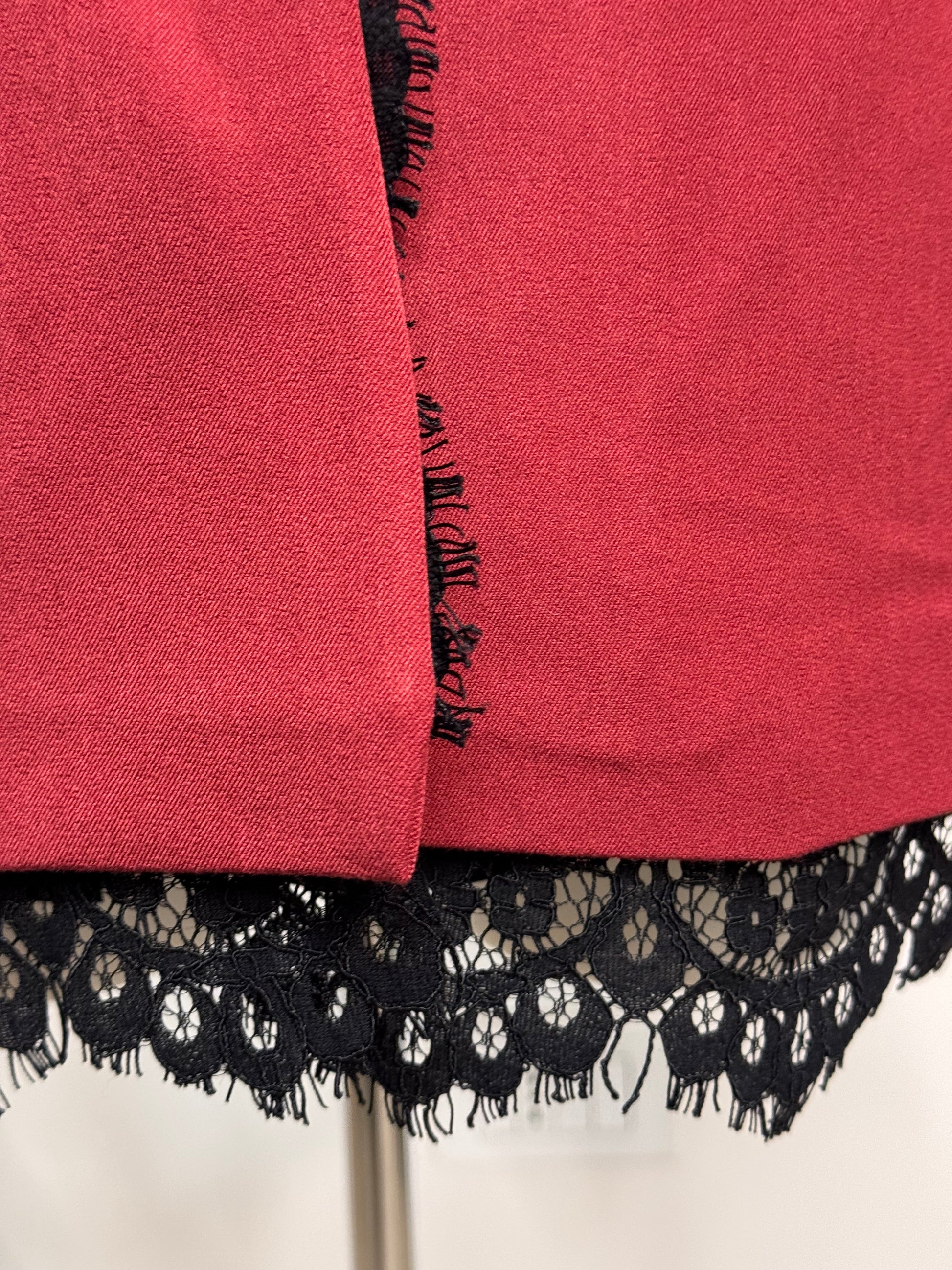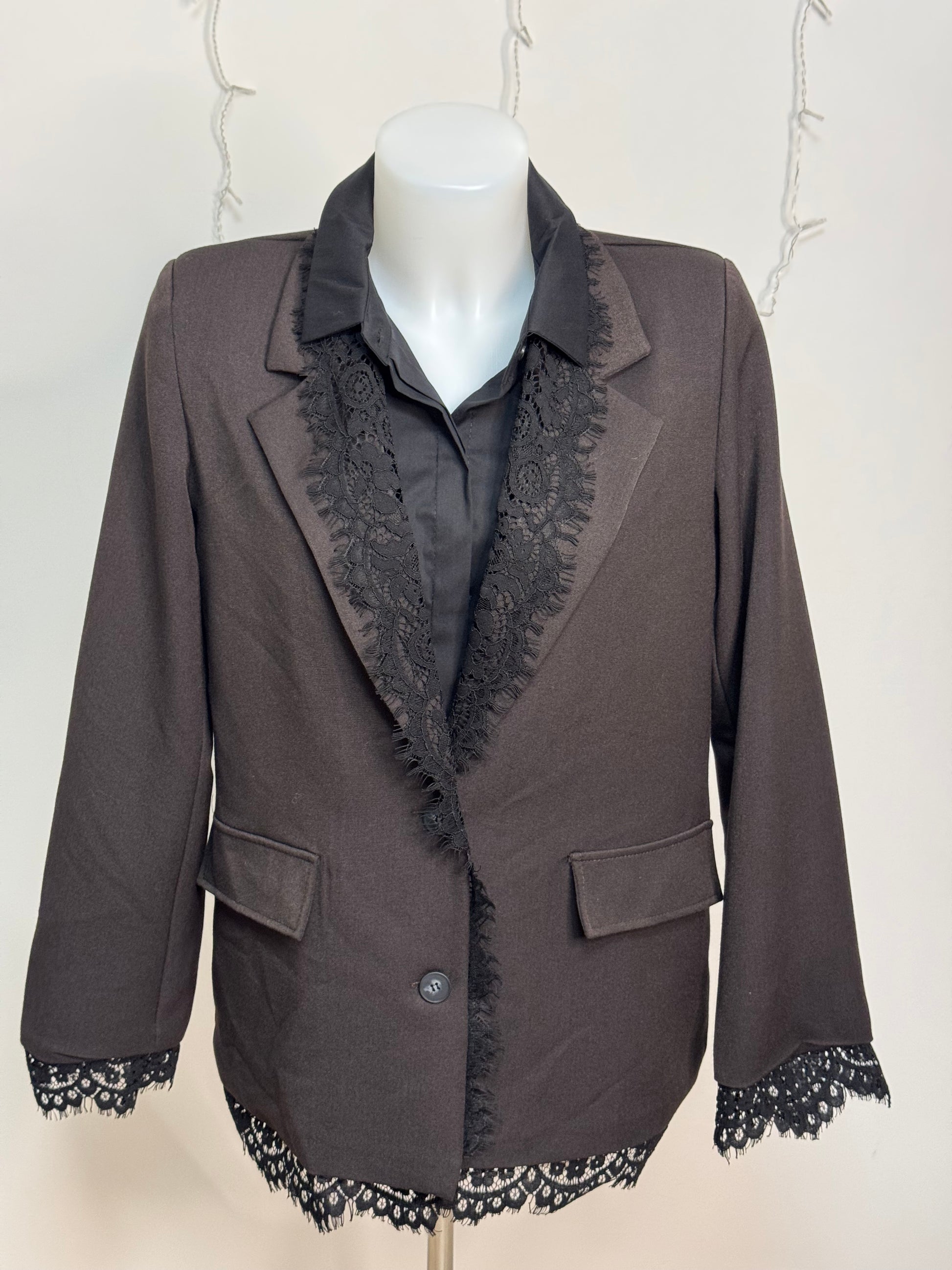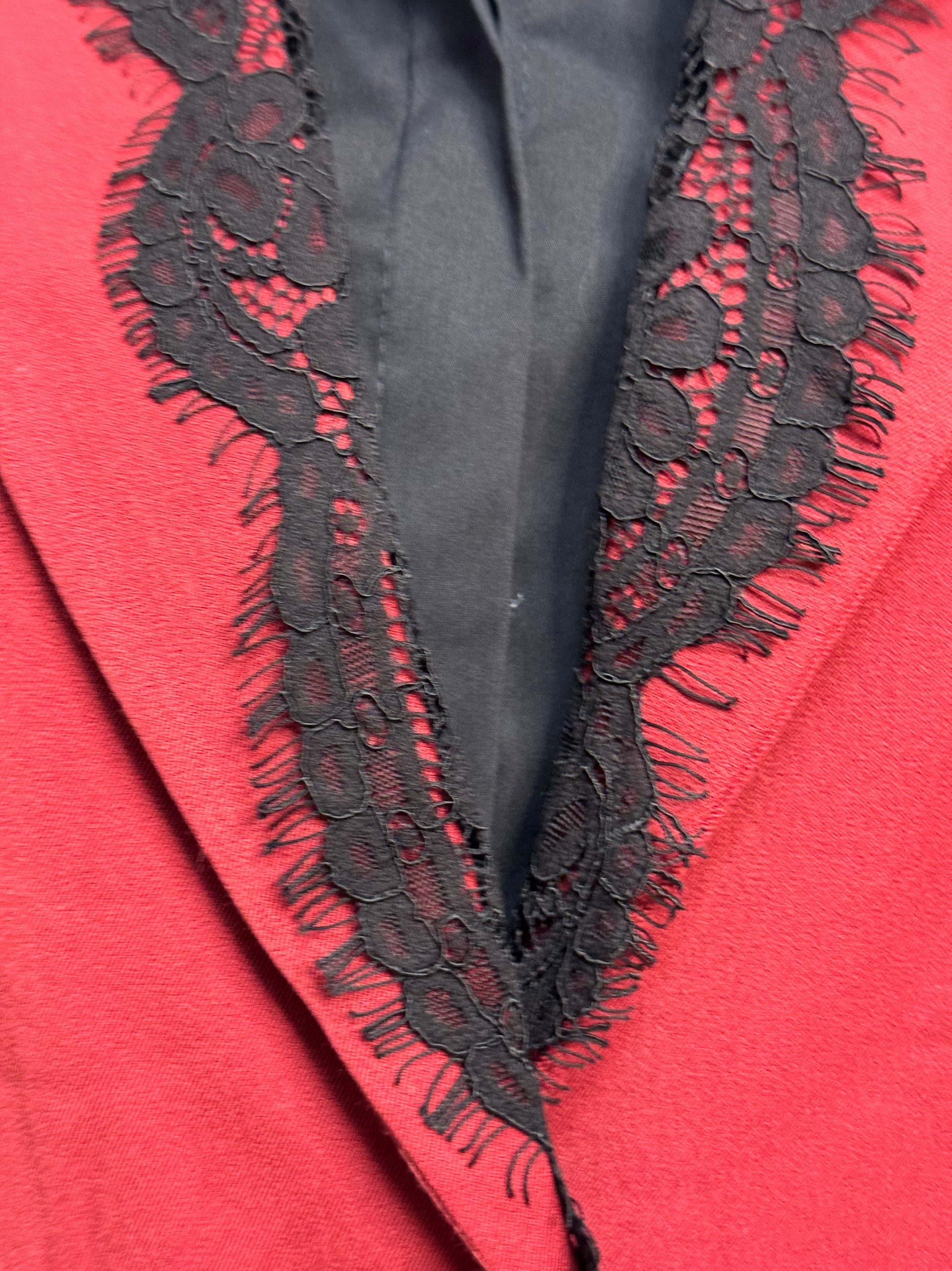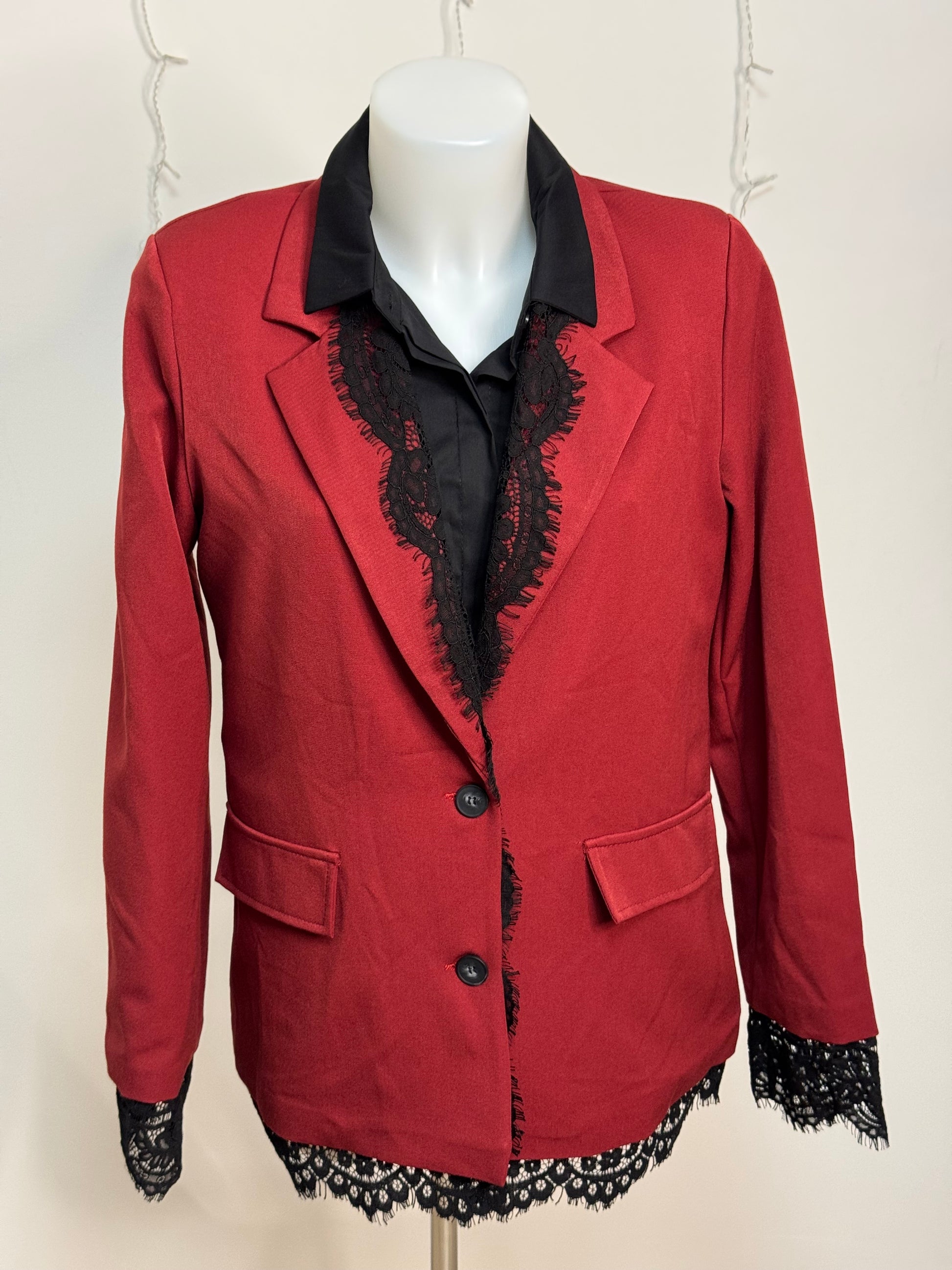 Giacca tinta unita con profili in pizzo nero. Allacciatura con bottoni. Vestibilita 42-48