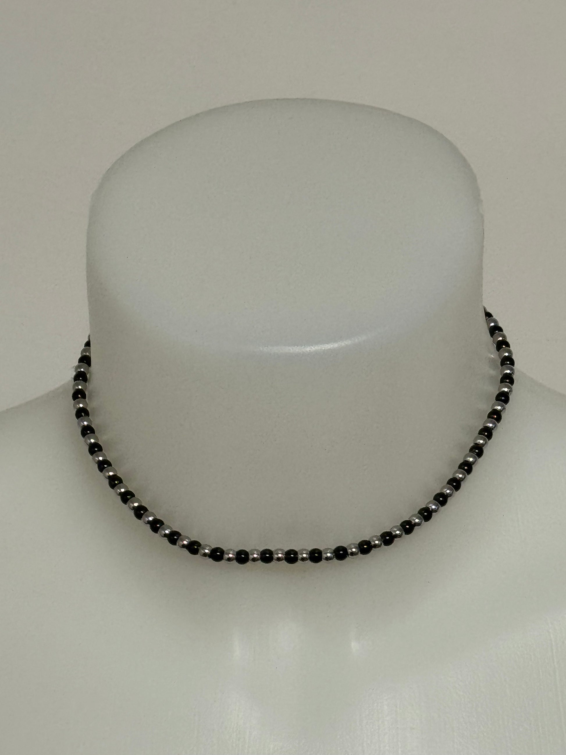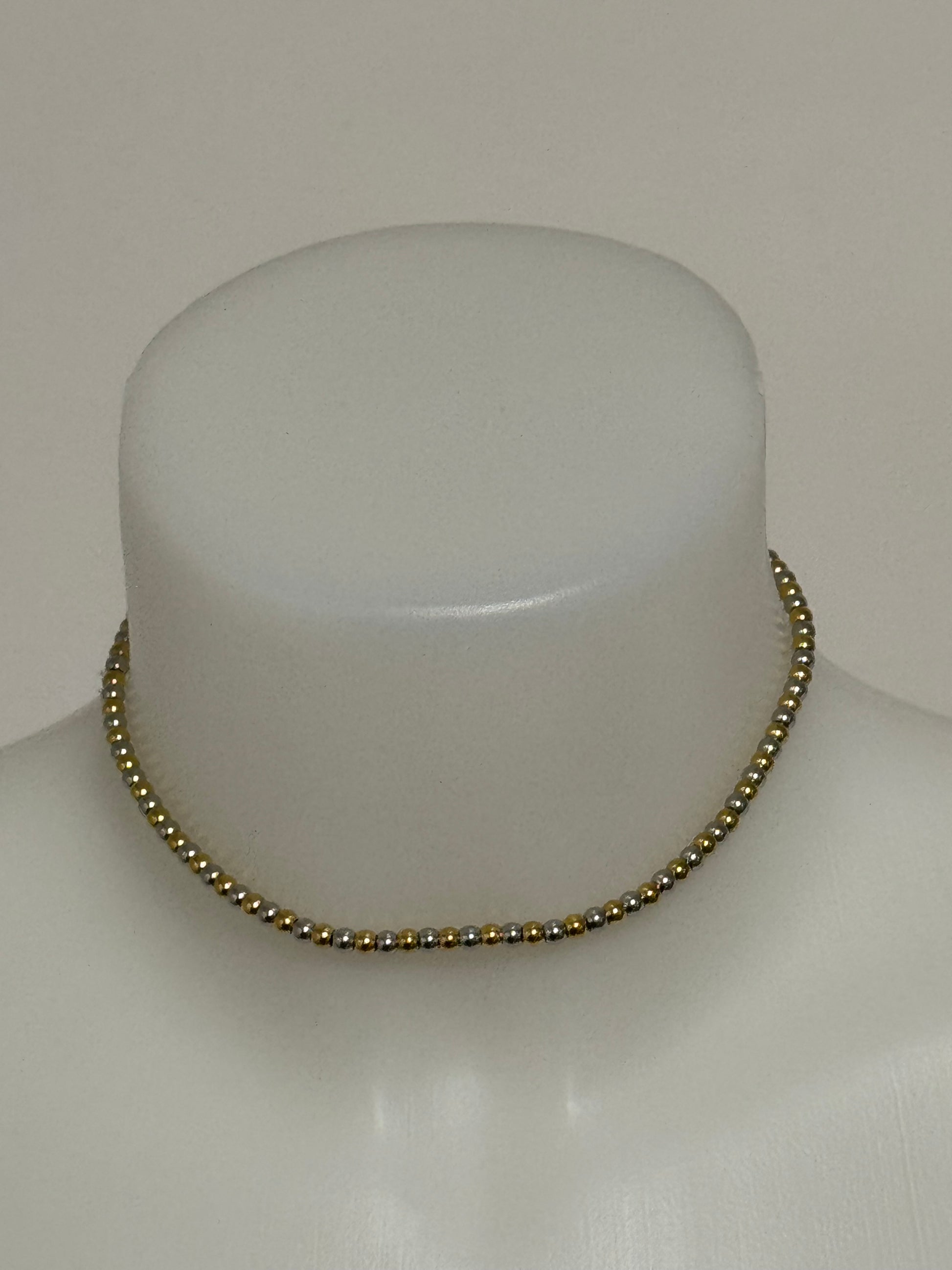 Girocollo a misura fatto di micro biglie in acciaio anallergico in doppio colore .