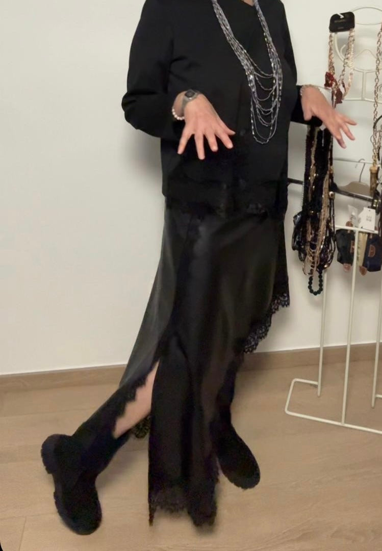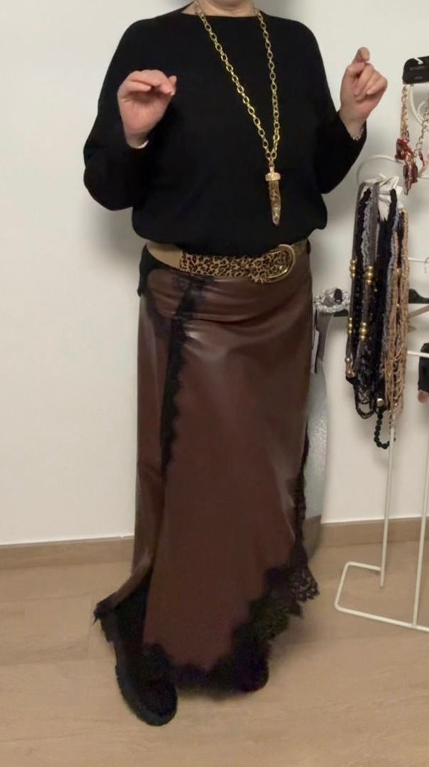 Gonna in simil pelle e pizzo