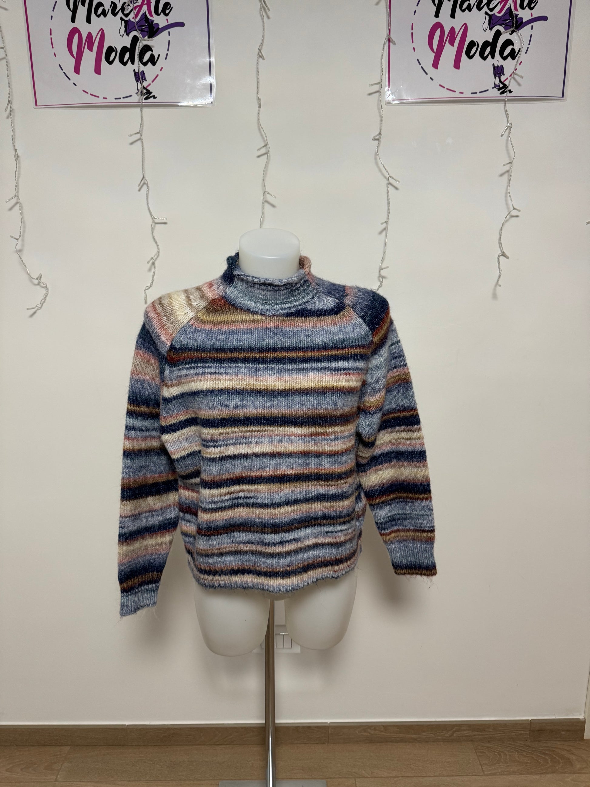 Pullover lana mezzo collo colore effetto rigo sfumato
