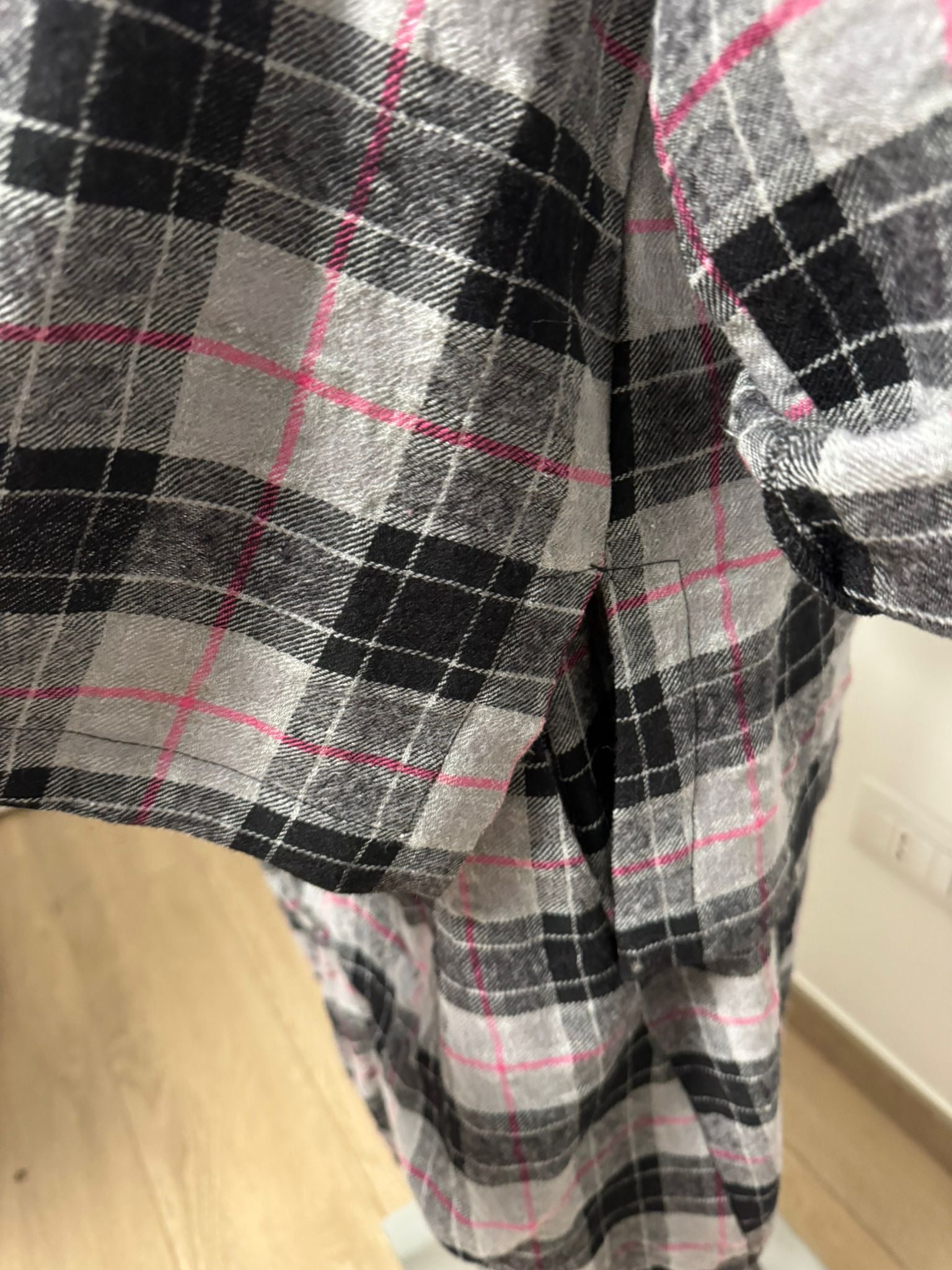 Coordinato Wendy Trendy in lana leggera in tartan sui colori del grigio con un tocco di colore fucsia.